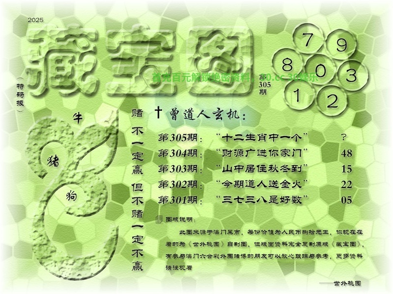 | 303期 | 1-4-5-6-7-8-9 | 兔15准 |